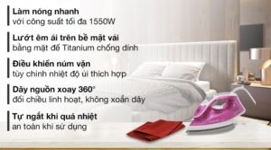 Bàn ủi Panasonic NI-M250TPRA có công suất tối đa 1550W, làm nóng mặt đế nhanh, ủi thẳng quần áo mau
