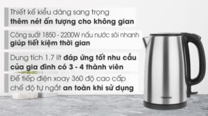 Có công suất 1850 – 2200W, mâm nhiệt lớn truyền nhiệt nhanh, đun nước sôi nhanh chóng
