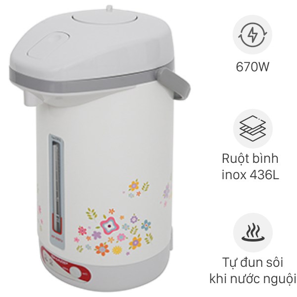 • Lòng bình bằng thép không gỉ có phủ lớp chống dính, an toàn