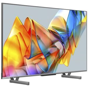 Google Tivi ULED Hisense 4K 43 inch 43U6K thuộc dòng sản phẩm ULED Premium mới ra mắt vào năm 2023 của Hisense. Mẫu tivi này sở hữu thiết kế độc đáo và sang trọng – thiết kế tràn viền giúp khung hình được mở rộng hơn mang lại trải nghiệm xem tuyệt vời. Thiết kế lấy cảm hứng từ sự năng động của xe thể thao cùng điểm nhấn đường viền xanh cách điệu mang đến sự trẻ trung năng động tạo nên sự khác biệt cho tivi Hisense. Chân đế tivi bằng kim loại nguyên chất, đơn giản, sang trọng và chắc chắn, kết hợp giải pháp cáp tăng tính thẩm mỹ.