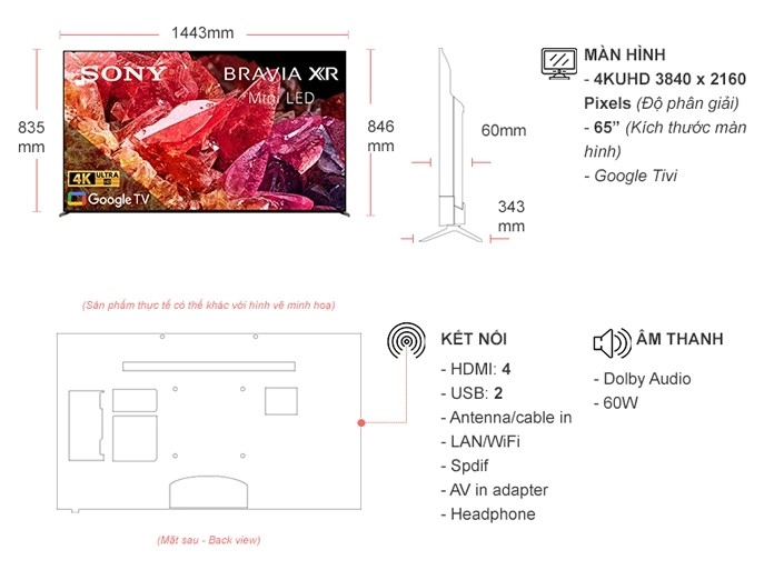 Đánh giá Google Tivi Mini LED Sony 4K 65 inch XR-65X95K