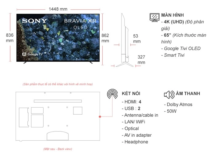 - Tivi Sony OLED 4K 65 Inch XR-65A80L thật sự có thể trở thành một trong những thiết bị nghe nhìn nổi bật trên thị trường điện tử Việt Nam nửa đầu năm 2023 khi không chỉ được trang bị những công nghệ tái tạo hình ảnh ưu việt mà khả năng trình phát âm thanh cũng vô cùng ấn tượng. Trong đó, không thể không kể đến công nghệ Acoustic Surface Audio+ – âm thanh phát ra từ màn hình.