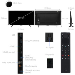 • Kích thước màn hình 55 inchđộ phân giải 4K và dải màu rộng từ công nghệ Quantum Dot.