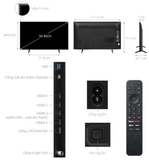 – Chân đế nâng đỡ tivi có dạng chữ V úp ngược làm từ nhựa cao cấp, chắc chắn, kích thước màn hình 50 inch dễ dàng bố trí trong các không gian phòng khách, phòng ngủ, phòng họp,… hoặc bạn cũng có thể tháo rời chân đế và bố trí tivi theo dạng treo tường, giúp tiết kiệm diện tích cũng như tăng tính thẩm mỹ cho không gian trưng bày.