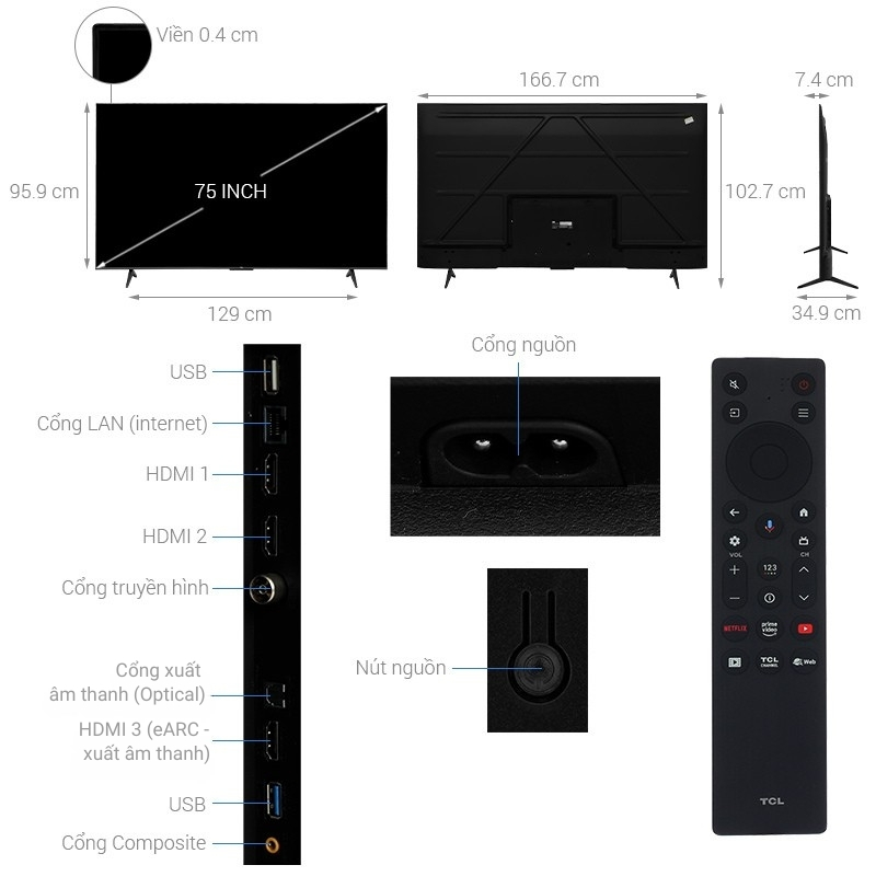 Đánh giá Google Tivi TCL AI 4K 75 inch 75P69K