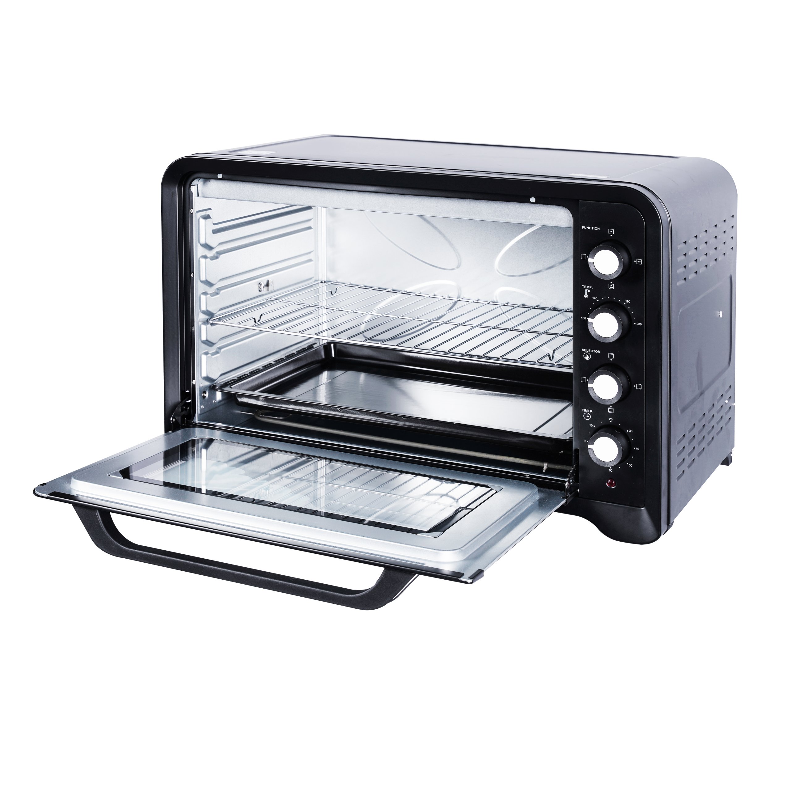 Lò trang bị núm xoay dùng để chỉnh nhiệt, chọn chế độ nấu, hẹn giờ. Đối với chiếc lò nướng này người nội trợ có thể cài đặt hẹn giờ tối đa là 60 phút. Nhiệt độ của lò từ 100 – 230°C, người dùng có thể chọn các mức nhiệt 100°C, 140°C, 190°C và 230°C sao cho phù hợp với món ăn cần chế biến.