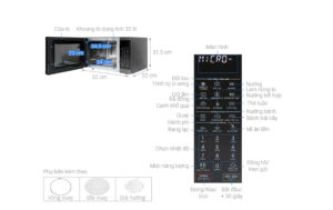 Lò vi sóng đa chức năng: nấu, hâm nóng, rã đông, nướng với bảng điều khiển điện tử hiện đại, có tiếng Việt dễ dùng