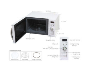 • Các tiện ích bao gồm chức năng hẹn giờ tối đa 95 phút, chuông báo khi nấu xong và đèn trong khoang lò.