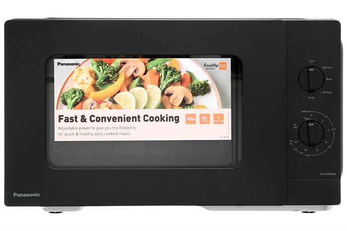Lò vi sóng Panasonic NN-SM33NBYUE 25 lít hoạt động ổn định với công suất vi sóng 900W được chia làm 5 mức phù hợp với từng nhu cầu hâm nóng, nấu, rã đông. Hơn thế, sản phẩm còn dễ sử dụng với bảng điều khiển nút vặn tùy chỉnh chương trình, thời gian, nút nhấn mở cửa lò, thiết kế đơn giản phù hợp với mọi không gian bếp.