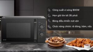 – Với công suất vi sóng tối đa 800W, được chia làm 5 mức (thấp – rã đông – trung bình – trung bình cao – cao), lò vi sóng Toshiba này giúp nấu, hâm nóng, rã đông nhanh chóng, tiện lợi.