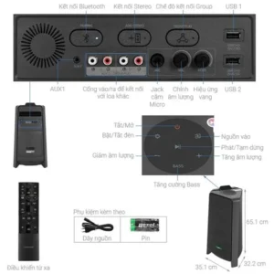 – Loa điện này hoạt động hiệu quả với tổng công suất lên đến 300W, cho âm thanh phát ra to rõ, mượt mà, 2 mặt loa giúp các giai điệu âm nhạc được lan tỏa rộng khắp, cho bạn trải nghiệm được nhiều nội dung giải trí khác nhau.
