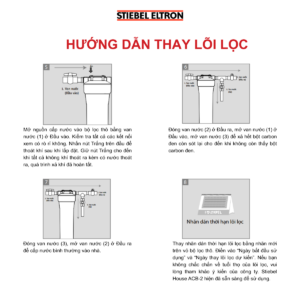 Bộ lọc than hoạt tính Stiebel House (Stiebel House ACB-2) được làm bằng bột than dừa chất lượng cao tẩm ion bạc để giảm mùi vị khó chịu và chất gây bẩn có hại trong nước ngọt bằng cách loại bỏ các hạt, clo, một số vi khuẩn và kim loại nặng.