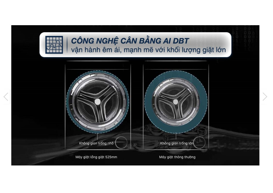 – Công nghệ cân bằng AI DBT giúp máy giặt vận hành êm ái và mạnh mẽ.