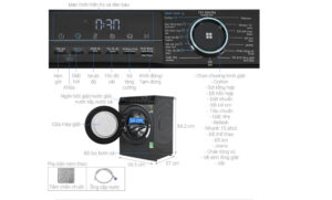 – Kiểu dáng: Máy giặt được thiết kế dạng cửa trước – lồng ngang, máy có màu đen kết hợp hài hòa với nội thất trong nhà.