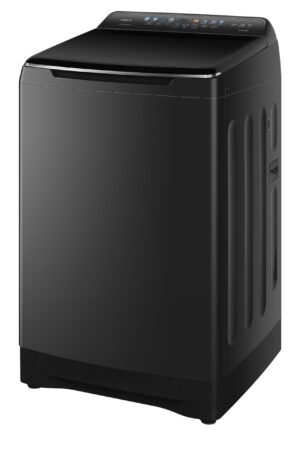 Máy giặt cửa trên sở hữu tông màu đen sang trọng, bảng điều khiển nút bấm kết hợp màn hình LED hiển thị rõ ràng. Thiết kế vỏ máy tinh tế với mối hàn laser mang lại độ hoàn thiện cao. Nắp kính cường lực không chỉ thẩm mỹ mà còn đảm bảo độ bền khi sử dụng lâu dài.