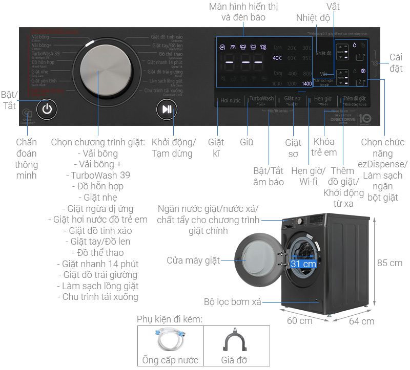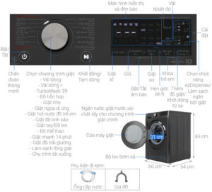 • Trang bị công nghệ giặt TurboWash™, giặt sạch quần áo nhanh chóng