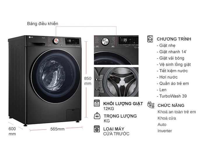 Đánh giá Máy giặt lồng ngang LG Inverter 12 kg FV1412S3B