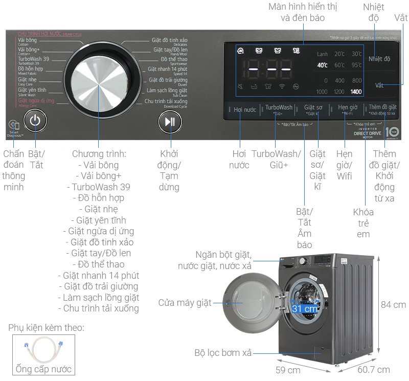 • Công nghệ giặt hơi nước Steam™ giảm nhăn, diệt khuẩn, ngăn ngừa dị ứng