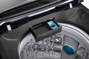- Chỉ cần cài đặt ứng dụng Smart Diagnosis trên điện thoại thông minh, bạn có thể chẩn đoán và xử lý nhanh các lỗi hay gặp trên máy giặt mà không làm gián đoạn công việc giặt giũ và tiết kiệm chi phí sửa chữa cho bạn.