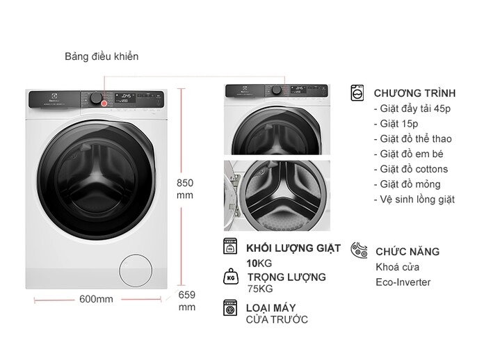 Đánh giá Máy giặt lồng ngang Electrolux Inverter 10kg EWF1043R7WC
