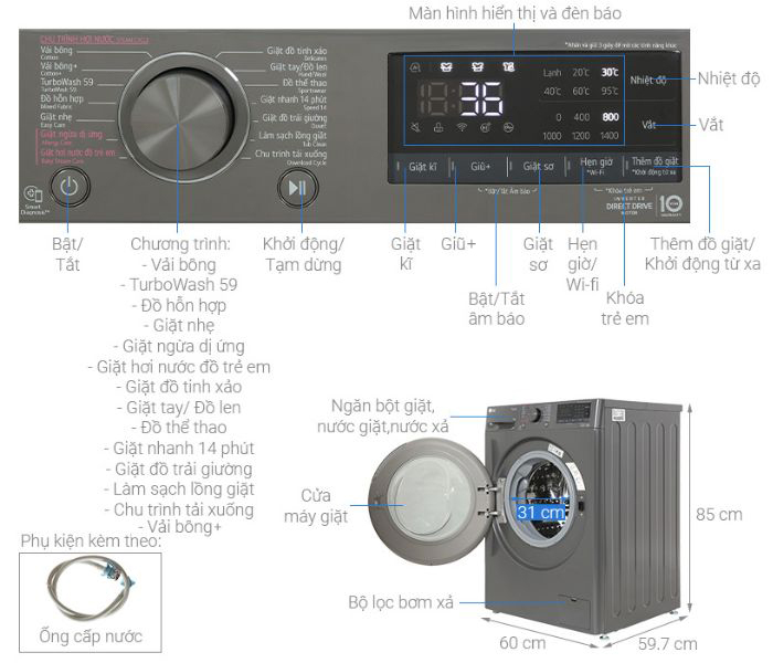 • Công nghệ Inverter tiết kiệm điện, quá trình giặt giũ êm ái.14 chương trình giặt đáp ứng đa dạng nhu cầu sử dụng.