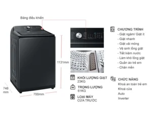 – Khối lượng giặt tối đa lên đến 23 kg, máy giặt này sẽ là sự lựa chọn thích hợp cho các gia đình đông người, có trên 7 thành viên hoặc những gia đình ít người hơn nhưng có thói quen gom quần áo giặt 1 lần/tuần.