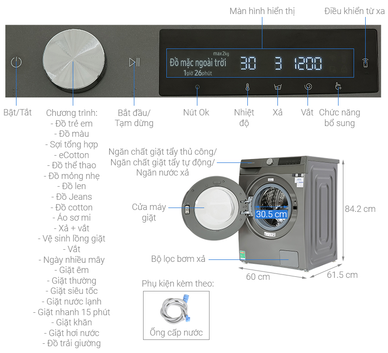 • Công nghệ giặt hơi nước Hygiene Steam diệt 99.9% vi khuẩn gây hại