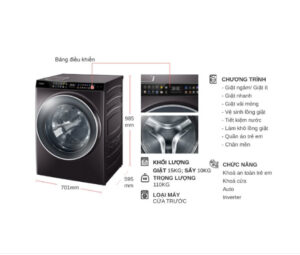 Đánh giá Máy giặt sấy Aqua Inverter giặt 15 kg – sấy 10 kg AQD-DH1500G PP