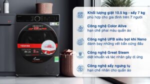 Đánh giá Máy giặt sấy Toshiba Inverter giặt 10.5 kg – sấy 7 kg TWD-T25BZU115MWV(MG)