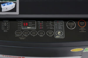 – Nắp máy giặt Toshiba bằng kính chịu lực chịu tải trọng lên đến 100 kg, thiết kế vân lụa ngăn nước bám vào bên trong nắp và hạn chế bám vân tay ở mặt ngoài, giữ nắp sạch sẽ, bền tốt.