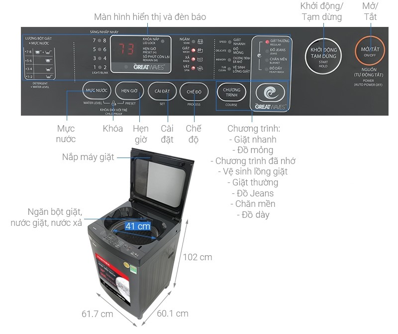 – Hẹn giờ giặt giúp bạn chủ động hơn trong thời gian giặt, phù hợp với những người bận rộn.