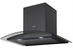 – Máy hút mùi áp tường thiết kế kính cong, tông màu đen chủ đạo sang trọng giúp tăng thẩm mỹ.