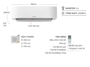 Với công suất làm lạnh 1 Hp (9200 BTU), sản phẩm này có khả năng làm lạnh hiệu quả trong phạm vi từ 15 – 20m². Đây là sự lựa chọn tuyệt vời cho các căn phòng, phòng làm việc, cửa hàng nhỏ và các không gian có diện tích vừa phải. Thiết bị này không chỉ mang đến không khí mát lạnh mà còn tăng cường sự tiện ích và thoải mái trong cuộc sống hàng ngày của bạn.