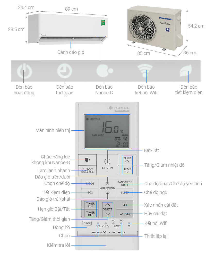 – Hẹn giờ bật/tắt: người dùng có thể cài đặt thời gian hoạt động của máy lạnh Panasonic Inverter, thuận tiện khi sử dụng.
