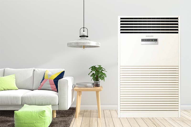 - Dàn lạnh của điều hòa cây Samsung AC096BNPDKC/TC-AC096BXPDKC/TC được đặt trực tiếp trên sàn mà không cần khoan lắp treo trên tường, bởi vậy bạn có thể lắp đặt linh hoạt trong nhiều vị trí khác nhau.