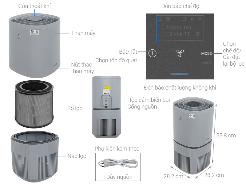 – Đèn báo chất lượng không khí giúp tiện theo dõi tình trạng không khí trong nhà.