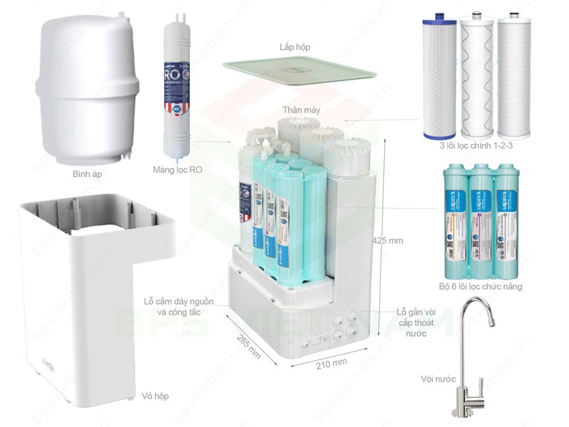 • 10 lõi lọc Smax mạnh mẽ: Gấp đôi hiệu suất và tuổi thọ lõi lọc; lọc sạch 99,99% vi khuẩn, kim loại nặng.