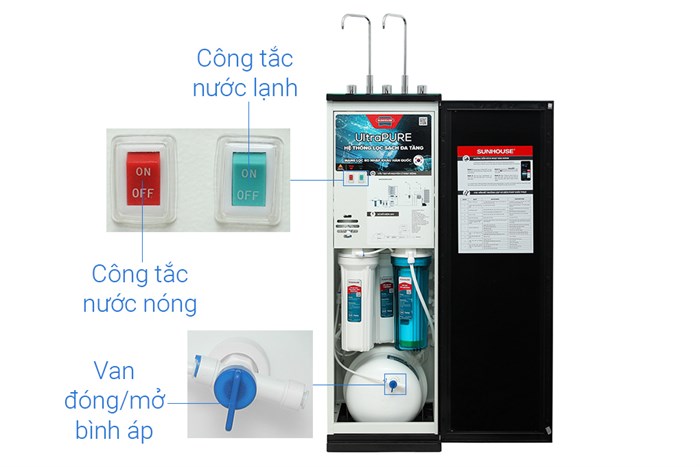 Đánh giá Máy lọc nước RO nóng nguội lạnh Hydrogen Sunhouse 11 lõi SHA76623KL