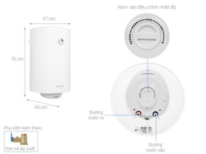 + Van xả áp an toàn: Chiếc van này có tác dụng giải phóng áp suất nước trong bình khi áp suất vượt quá mức cho phép.