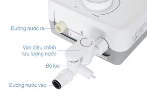 – Sản phẩm tích hợp van cấp nước 3 trong 1 giúp kiểm soát và lọc nước đầu vào hiệu quả.