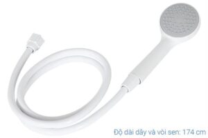 – Vòi sen đi kèm có thiết kế đơn giản với 1 chế độ phun, tích hợp công nghệ kháng khuẩn AntiBacPlus an toàn cho da. Giá đỡ bằng thép không gỉ giúp cố định vòi sen chắc chắn.