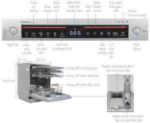 Chiếc máy rửa chén này tích hợp kiểu bảng điều khiển nút nhấn có màn hình hiển thị sắc nét các chỉ số, từng phím bấm được ký hiệu đơn giản và rõ ràng cho người dùng theo dõi và điều chỉnh dễ dàng bất cứ lúc nào.