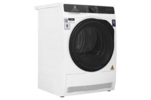 Máy sấy bơm nhiệt Electrolux UltimateCare 8 kg EDH803J5WC sử dụng cơ chế sấy bơm nhiệt phù hợp cho gia đình có từ 3 – 5 người với khối lượng sấy tối đa 8 kg. Máy sở hữu công nghệ SensiCare với cảm biến thông minh, giúp bảo vệ sợi vải; công nghệ Reverse Tumbling chống nhăn, giúp quần áo không bị xoắn rối,… cùng nhiều tiện ích như khóa trẻ em, chuông báo khi sấy xong,…