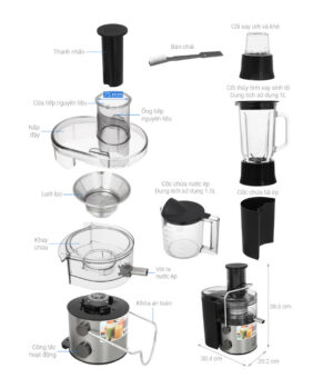 Sản phẩm thuộc dòng máy ép đa năng có thể dùng để ép trái cây, rau củ hoặc xay hạt, xay sinh tố,…