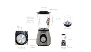 Dung tích 1.5 lít xay được 3 – 5 ly sinh tố cho 1 lần dùng.