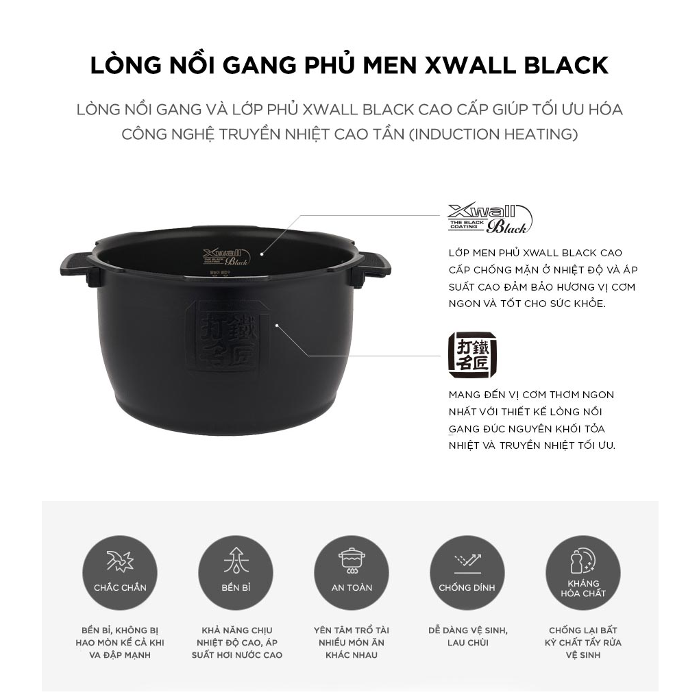 • Lòng nồi phủ men X-Wall Black chống dính tuyệt đối chịu được nhiệt