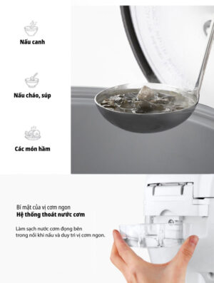 - Đèn báo hiển thị chức năng nấu và giữ ấm, giúp bạn thuận tiện theo dõi quá trình nấu.