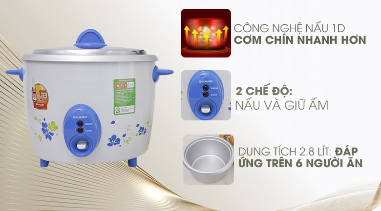 Nồi cơm điện Sharp KSH-D28V có màu sắc nhã nhặn với họa tiết nhẹ nhàng, thanh lịch