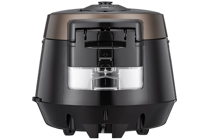 - Van xả kép an toàn là công nghệ độc quyền chỉ có trên nồi cơm điện Cuckoo, giúp hạn chế tiếng ồn khi xả hơi. Cả van xả hơi và khay đựng nước thừa đều có thể tháo ra để vệ sinh.