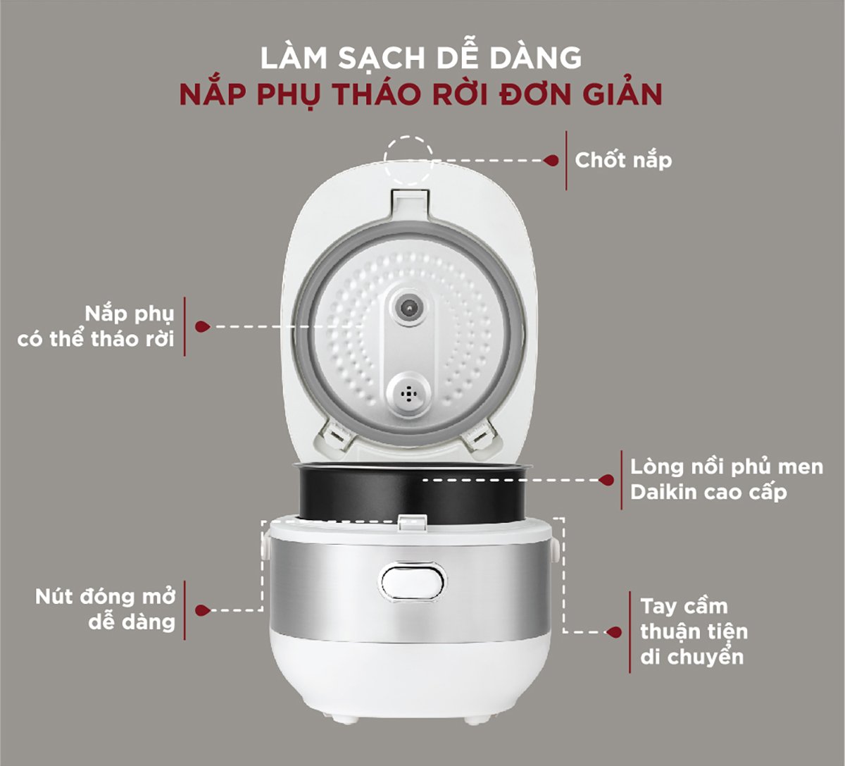 • Dung tích 1.08L phù hợp cho gia đình từ 2-4 người
